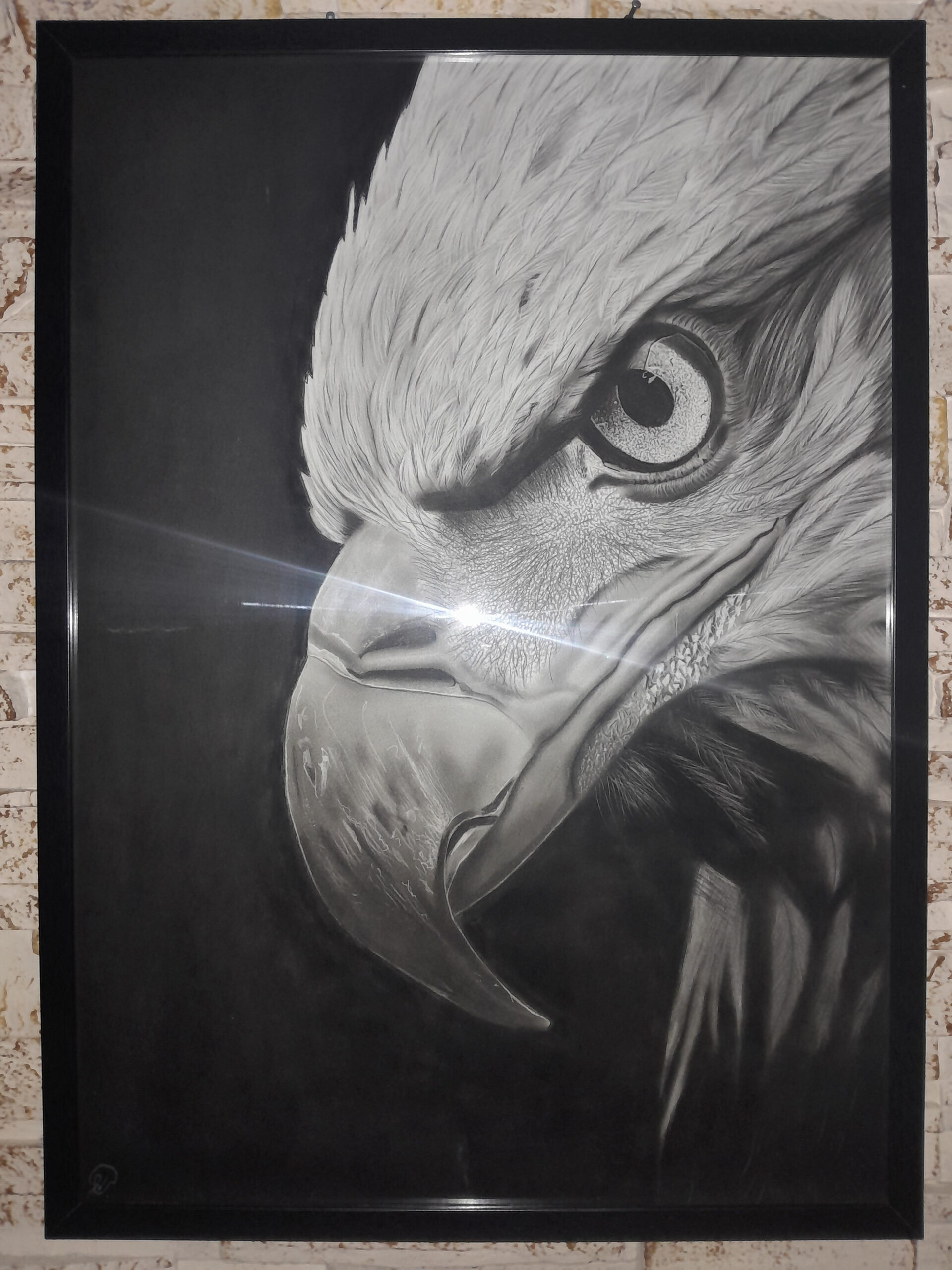 تصویر سیاه قلم 50 در 70 عقاب در قاب عکس ( کد محصول 1404072105)